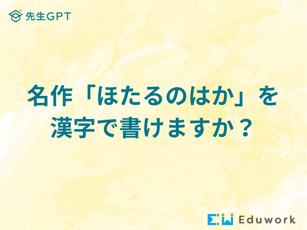 名作「ほたるのはか」を漢字で書けますか?